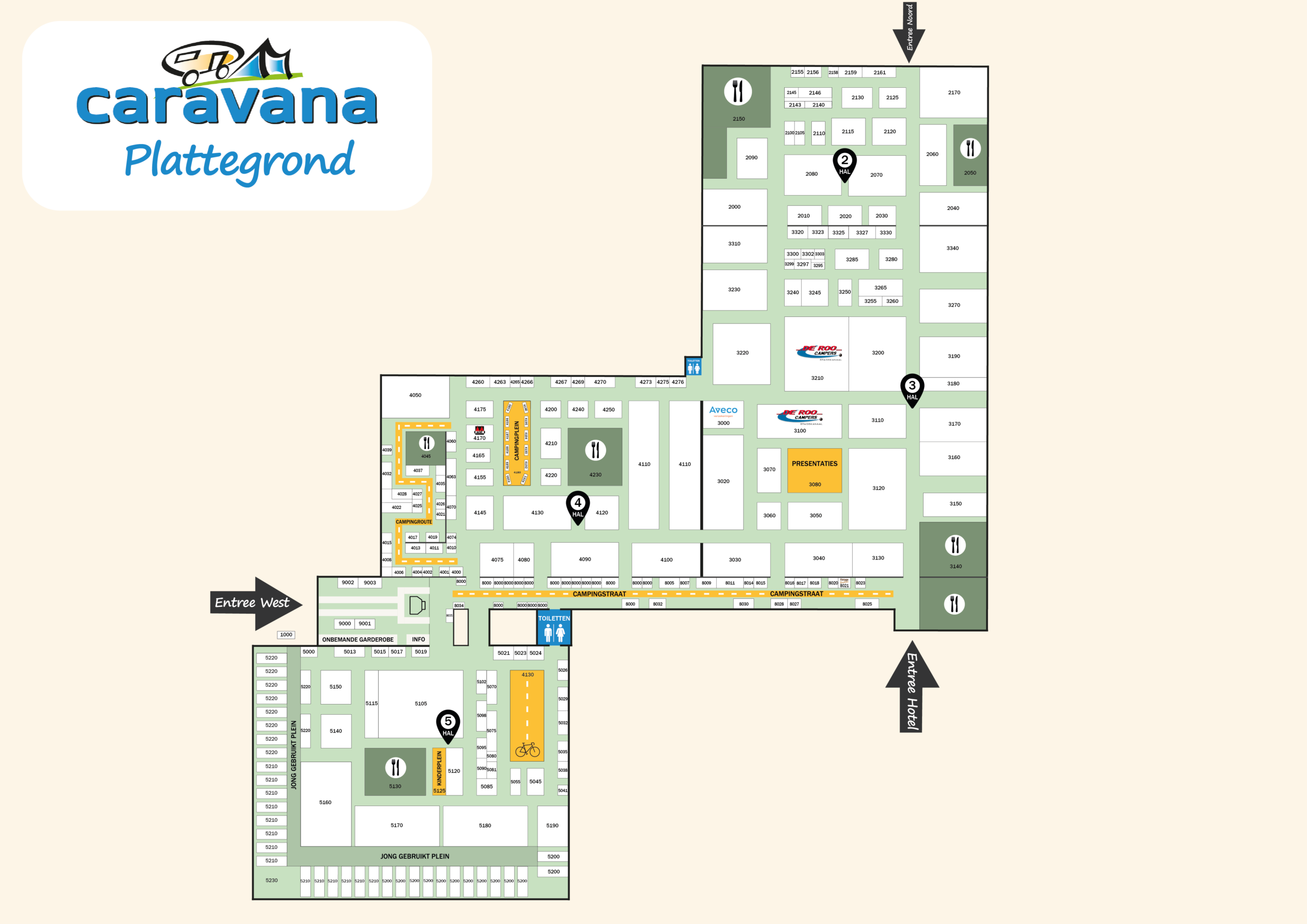 Benieuwd welke deelnemers allemaal te vinden zijn op Caravana en waar? Verken alvast de plattegrond, navigeer eenvoudig door de verschillende hallen en krijg zicht op alles wat er te zien is!