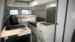 Ook de Sun Living V 60DL viel in de prijzen, maar dan net over de grens. Deze compacte buscamper werd in België uitgeroepen tot Van of the Year in de categorie tot € 70.000. Jury en publiek prezen vooral de efficiënte en veelzijdige indeling. De douche- en toiletruimte is volledig aanwezig, maar slim weggewerkt wanneer deze niet wordt gebruikt.